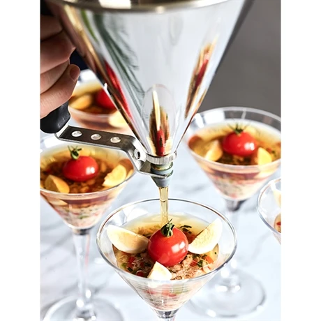 L’entonnoir Ă piston de Buyer vous permet de dĂ©corer vos assiettes, garnir vos mignardises et choux pâtissiers, remplir vos verrines avec prĂ©cision, etc. Vous pouvez rĂ©gler le dĂ©bit de l’entonnoir directement sur la poignĂ©e, pour un dosage prĂ©cis.