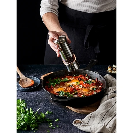 Les moulins électriques Zéli vous permettent d’assaisonner vos plats par une simple pression du bouton situé sur le dessus du moulin. Ils fonctionnent avec six piles fournies et disposent d’une lampe intégrée afin de contrôler la quantité exacte d’épice ou de condiment que vous voulez ajouter dans votre assiette. Caractéristiques techniques : ABS nickelé brossé, mécanisme garanti 2 ans.